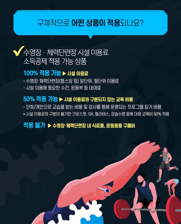 등록날짜2025.06.10 13:06 조회수48074 수영장 체력단련장 시설 이용료 소득공제에 대해 알려드려요~!